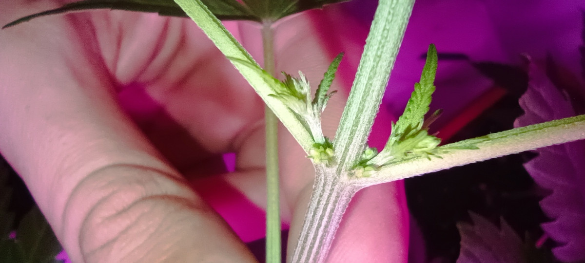 При переходе в вазу цветения, в местах ответвления боковых побегов и на верхушке, конопля начнет формировать предцветы. Первоначально они будут напоминать небольшие бугорки, но спустя несколько дней примут характерную форму для мужских и женских растений.
