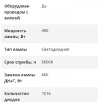 - 2 лампы LED по 115-180 Вт или 1 на 530 Вт.